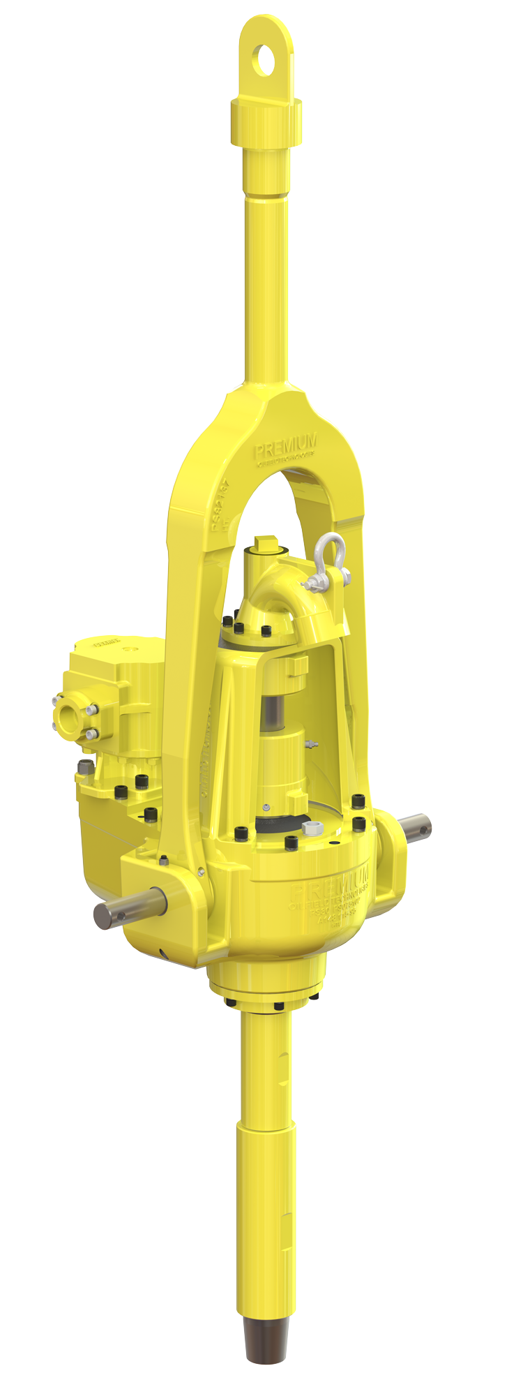 The hydraulic, motor-driven Premium 30-ton power swivel provides smooth, shock-free torque. It is rated to support tensile pipe loads of 30 tons at 50 rpm and 24 tons of dynamic load at 100 rpm. The compact, swivel-head design weighs only 650 lbs. and fits into most drilling or workover masts.