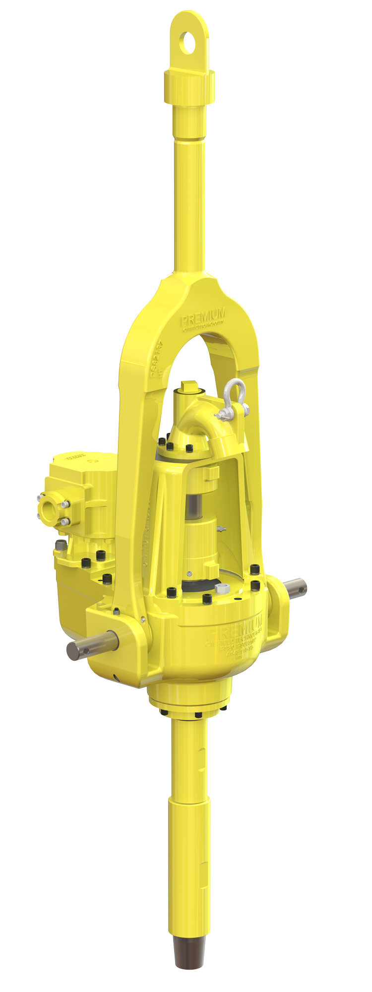The hydraulic, motor-driven Premium 30-ton power swivel provides smooth, shock-free torque. It is rated to support tensile pipe loads of 30 tons at 50 rpm and 24 tons of dynamic load at 100 rpm. The compact, swivel-head design weighs only 650 lbs. and fits into most drilling or workover masts.